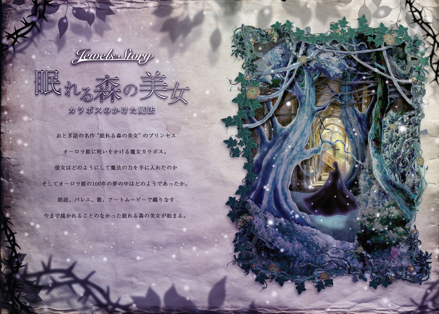 眠れる森の美女 制作期間:2か月 元宝塚歌劇団宙組初代トップスター 姿月あさと主演。バレエの名作「眠れる森の美女」を悪役視点から描いた、ダークファンタジー朗読劇。 【担当】●プロモーションビデオ撮影・編集● 舞台背景映像制作・映像演出●ロビー展示用ムービー制作●DTPデザイン / グラフィックデザイン イラスト WORKアーカイブ PREVIOUS NEXT